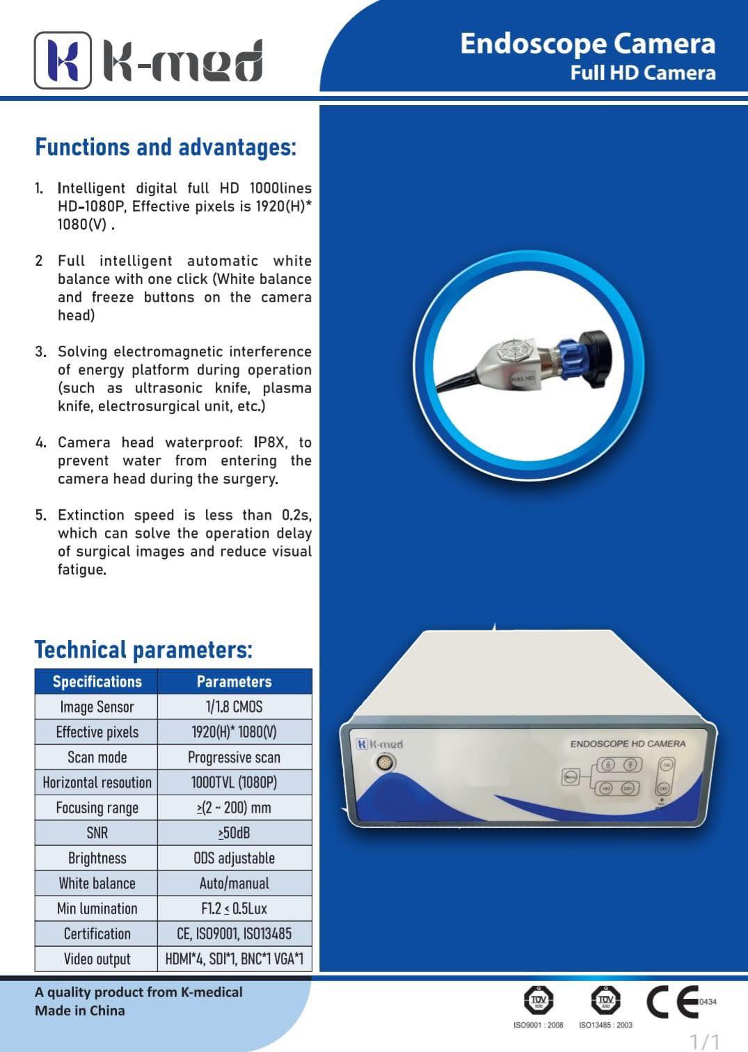 - Camera head is waterproof (IP8X) to prevent water entry during surgery.